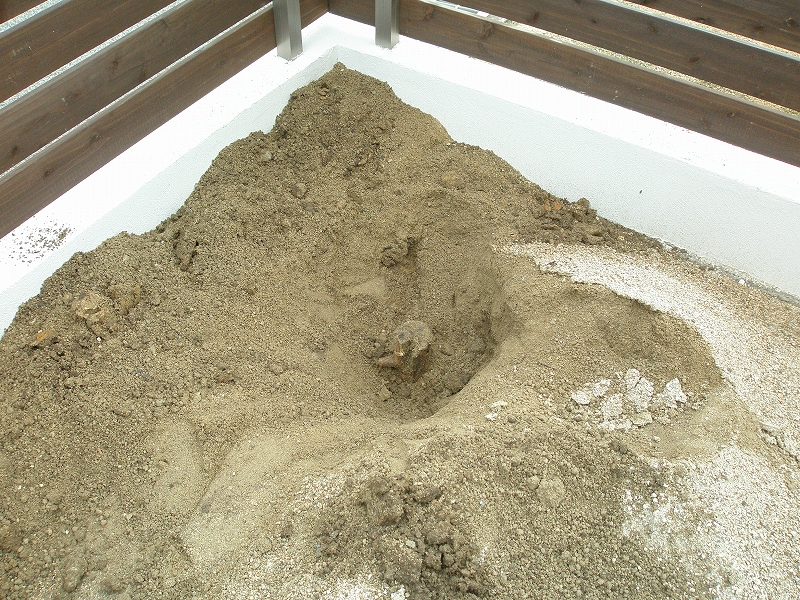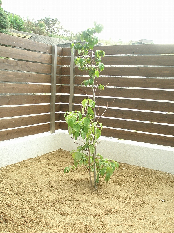 ウッドデッキ周りは全く手付かずで1ヶ月が過ぎ、この植樹でようやく動き出した感じです。