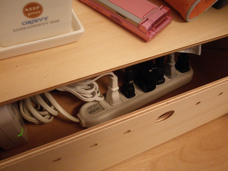 タップのほかに長すぎて余ったコードも結束して押し込んでますし、