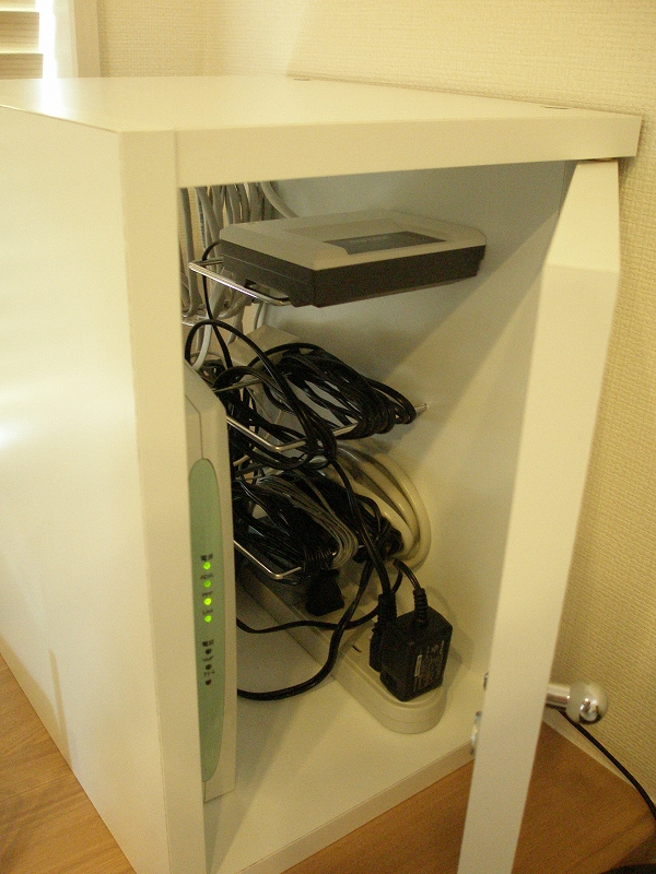 うちのADSLモデムが縦長すぎて、横置きだと収まらなかったんです・・・。(凹